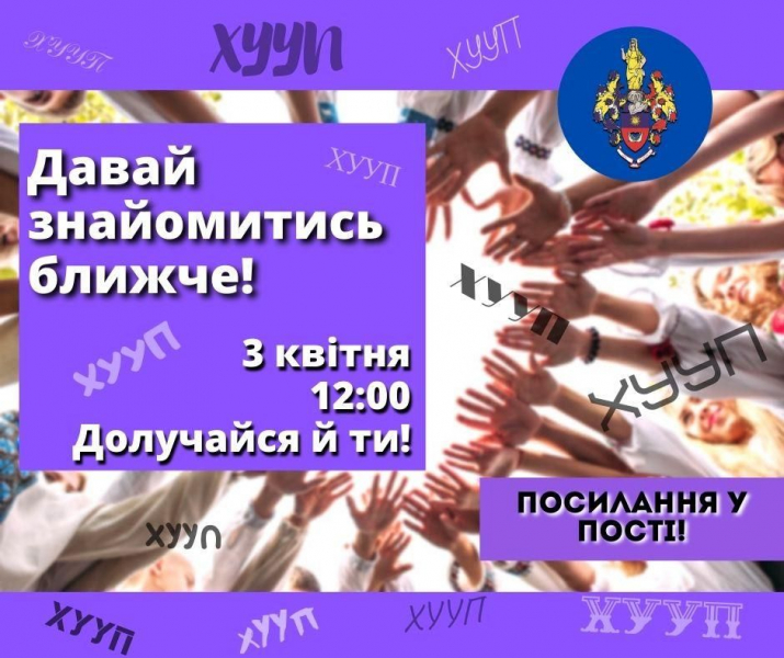 Зареєструйся та долучайся до нашої цікавої та пізнавальної конференції - "Знайомство з ХУУПом імені Леоніда Юзькова"! 3 квітня 2021 року о 12:00!!! Новий формат, цікаві обговорення та чимало корисної інформації для вс ......