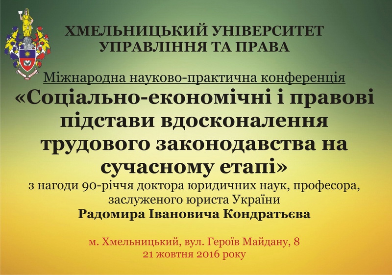| Організаційний комітет Міжнародної науково-практичної конференції «Соціально-економічні і правові підстави вдосконалення трудового законодавства на сучасному етапі» з нагоди 90-річчя доктора юридичних наук, ...... Подробней |