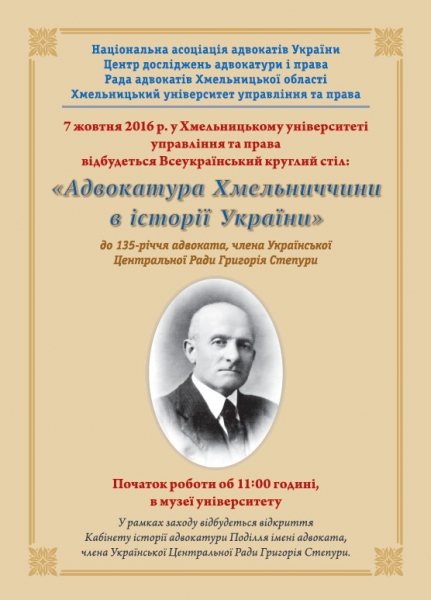 | Національна асоціація адвокатів України, Центр досліджень адвокатури і права, Рада адвокатів Хмельницької області та Хмельницький університет управління та права проводять Всеукраїнський круглий стіл:
