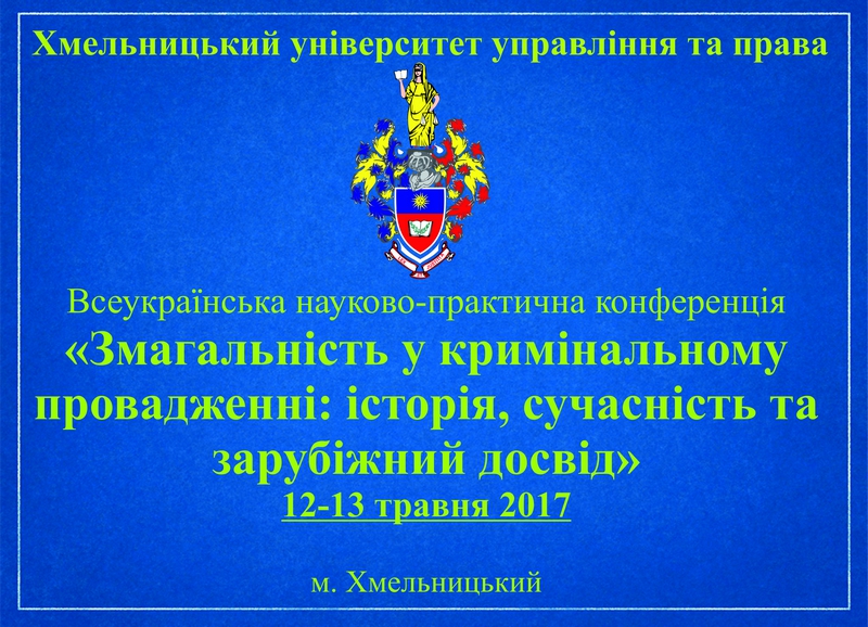 | 12-13 травня 2017:«Змагальність у кримінальному провадженні: історія, сучасність та зарубіжний досвід» |