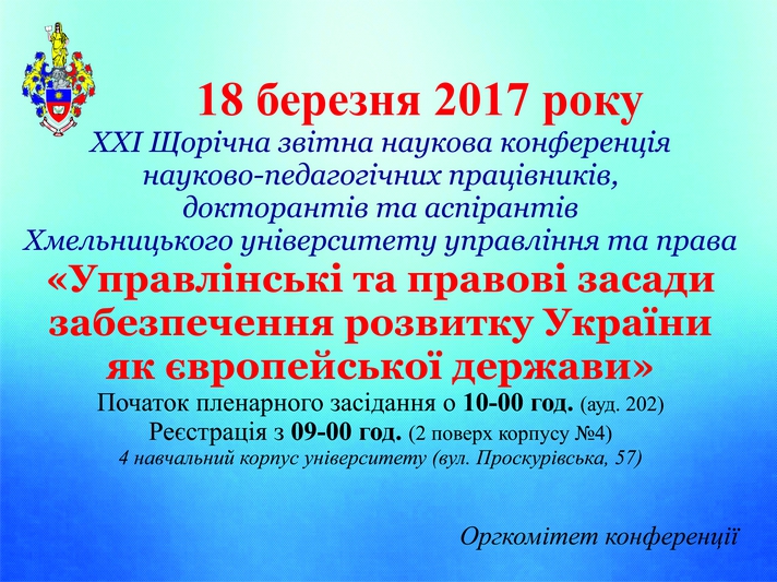 | 18 березня 2017 року: «Управлінські та правові засади забезпечення розвитку України як європейської держави» |
