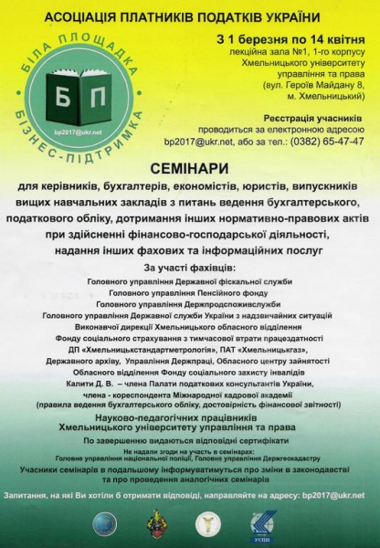 | 8 лютого 2017 року у Хмельницькому університеті управління та права відбулись звітно-виборні збори профспілкової організації працівників університету. Заслухано звіт голови профспілкової організації Вавринчук ...... Подробней |