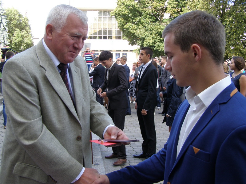Та кожне добре починання, за давньою традицією нашого народу, завжди супроводжується не лише батьківським, але й Божим благословенням. Тож отець Олександр у своїй промові побажав усім успішного навчального року та окропив першокурсників святою водою.