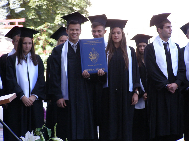 А потім студенти першого курсу вперше у своєму житті чули «Гаудеамус» на власну честь та співали гімн Хмельницького університету управління та права. Може і виходило у них не дуже складно, та за 5 років ще добре вивчать рідну серцю кожного випускника мелодію Альма-Матер!
