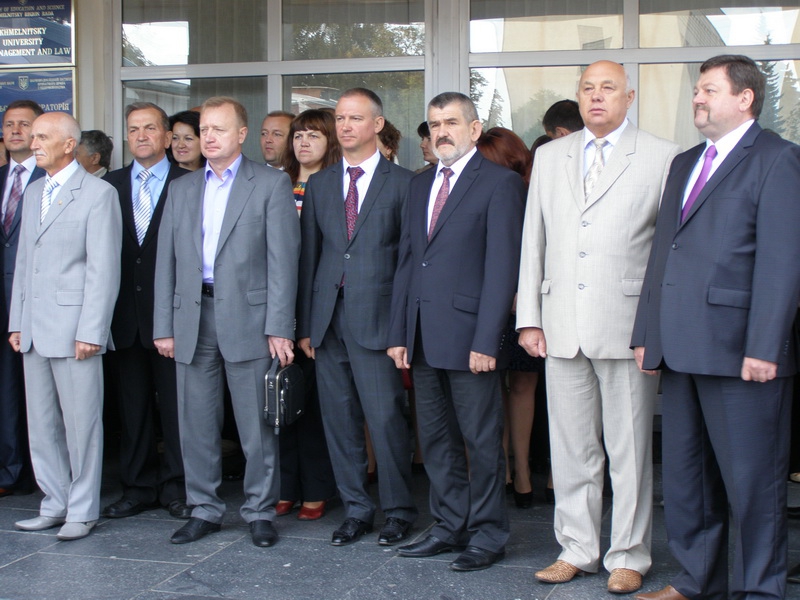 Піднесеність моменту продовжив своїм вітальним виступом перший проректор університету, доктор історичних наук Л. Л. Місінкевич. З вітальним словом до першокурсників та науково-педагогічних працівників звернулися також заступник голови апеляційного суду Хмельницької області В. М. Барчук та начальник Управління державної служби Головного управління державної служби України в Хмельницькій області Г. І. Гоцький.