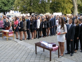 2 вересня, як завжди, площа біля центрального корпусу університету була переповнена схвильованими першокурсниками, гордими батьками та поважними гостями. Традиційні урочистості з нагоди Дня знань розпочалися символічними словами богині правосуддя Феміди: «Вищими силами було визначено так, щоб на прекрасній Подільській землі був збудований храм науки, ім’я якому - Хмельницький університет управління та права.