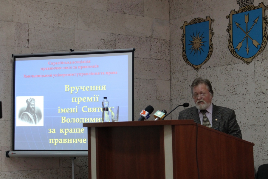 На пленарному засіданні конференції також були оголошені результати засідання номінаційної комісії конкурсу на присудження щорічної премії імені Святого Володимира за краще друковане науково-правниче видання, всього у 6 номінаціях. Організатори, а саме Євразійська асоціація правничих шкіл та правників спільно з Хмельницьким університетом управління та права відзначили лауреатів премії грошовими винагородами.
