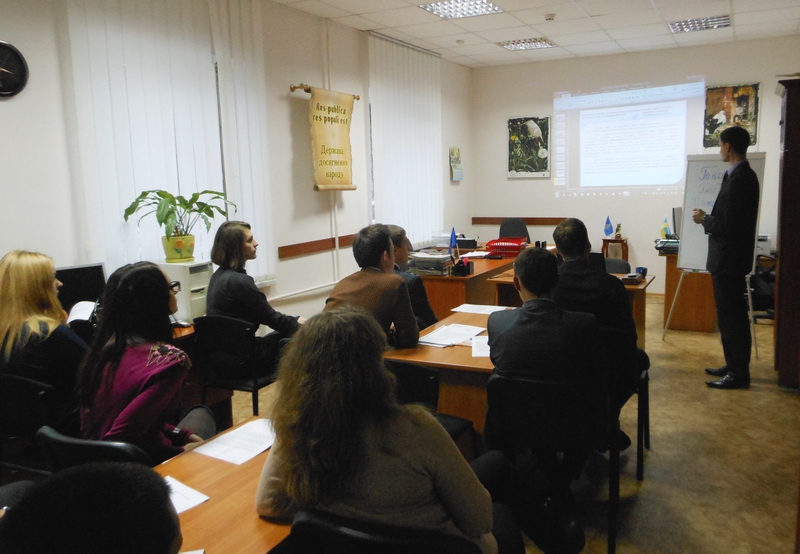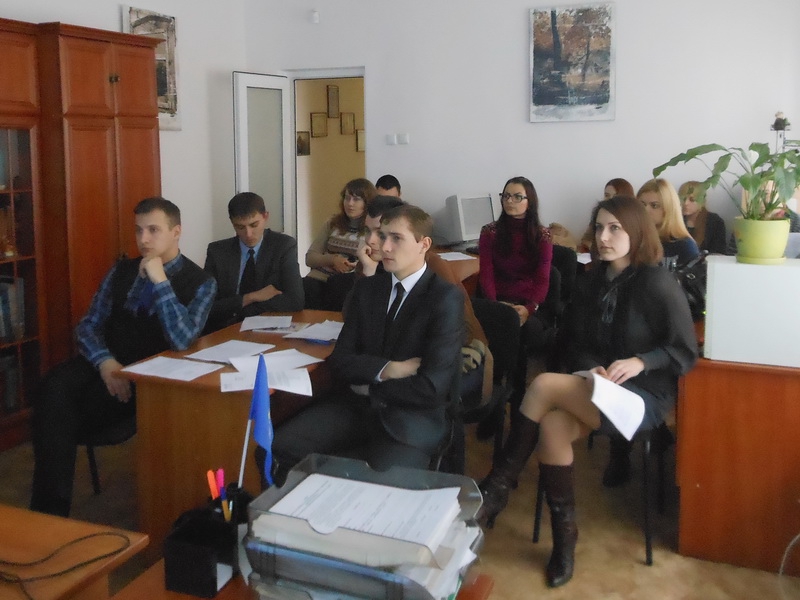 Дещо раніше, 7 листопада цього року, відбулась зустріч студентів 4-го курсу юридичного факультету з головним спеціалістом відділу правової роботи та представництва інтересів держави в судах Головного управління юстиції в Хмельницькій області Присяжним Олексієм Івановичем. В ході зустрічі було обговорено актуальні практичні питання, що виникають під час виконання судових рішень, здійснення виконавчого провадження, представництва інтересів держави в судах. Олексій Іванович надав зразки процесуальних документів, що найчастіше використовуються в його роботі та вказав на специфіку їх складання. Не залишилась поза увагою проблема недосконалості чинного законодавства, що породжує на практиці виникнення низки непорозумінь та перешкод у реалізації фізичними та юридичними особами своїх прав та обов’язків.