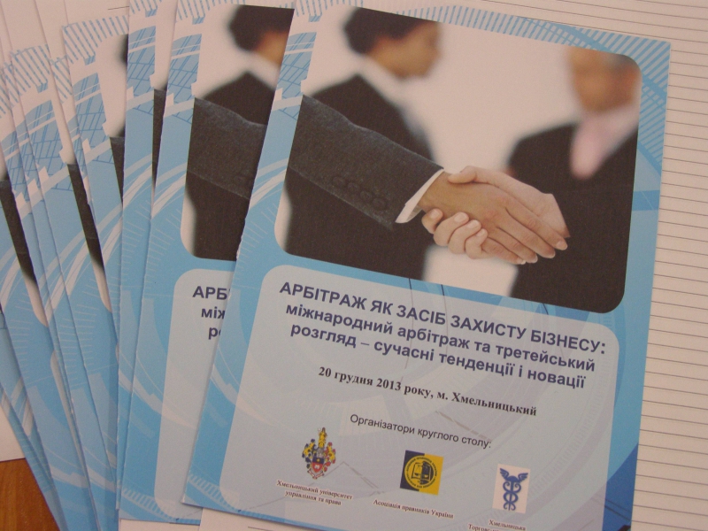 20 грудня 2013 року в конференц-залі Хмельницької торгово-промислової палати відбувся круглий стіл на тему «Арбітраж, як засіб захисту бізнесу: міжнародний арбітраж та третейський розгляд – сучасні тенденції і новації».