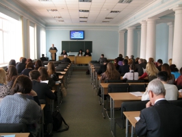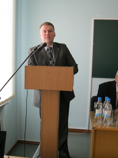 Лекційний зал ім. В. К. Андрушка був переповнений викладачами, аспірантами, здобувачами, загалом – науковцями університету. Перед присутніми з вітальним словом виступив ректор університету, доктор юридичних наук Олег Миколайович Омельчук.
