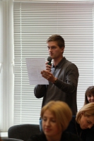 Після жвавого обговорення виступу Є. Соболєва, слово взяв заступник начальника Управління державної служби Головного управління державної служби України в Хмельницькій області Віктор Міщишин, який детально розкрив поняття, основні критерії та світовий досвід люстраційних процесів.