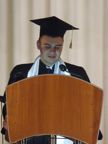 Від імені батьків, яких у залі було дуже багато, до випускників із напутнім словом звернулася Олена Олександрівна Матус. А ось своїми спогадами про студентське життя, враженнями про останні дні в університеті та планами на майбутнє ділився Олександр Прокопов. І своїм зверненням до колег-випускників викликав у залі як сміх, так і сльози (особливо у навчальної частини юридичного факультету)))).