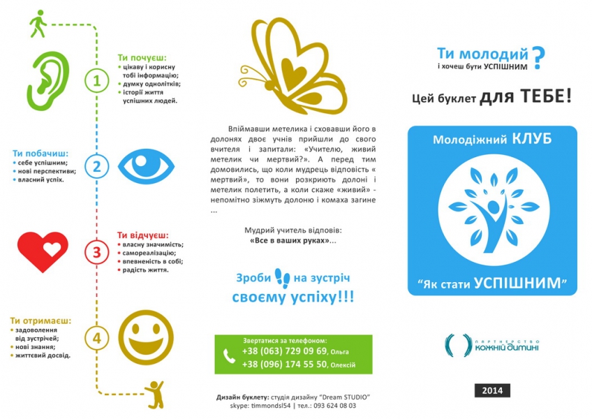 У рамках реалізації проекту з жовтня 2014 року по червень 2015 року передбачено низку заходів (тренінгів, супервізійних зустрічей, творчих дискусій), спрямованих на підготовку команди молодіжних тренерів для активізації діяльності чи створення в своїх громадах молодіжних клубів за програмою підвищення соціальної компетентності "Як стати успішним".