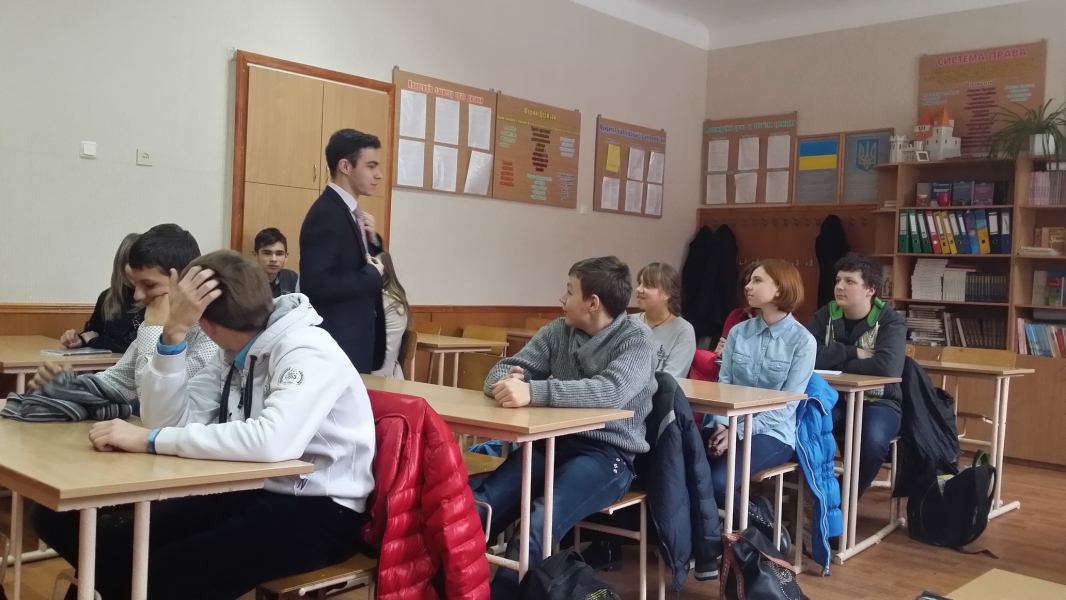 Під час заняття школярам було роз’яснено, за які дії та з якого віку настає юридична відповідальність. Також було наголошено на основних видах юридичної відповідальності та розглянуто характерні відмінності між ними. З метою кращого розуміння й усвідомлення матеріалу школярами після пояснення теоретичного змісту їм було запропоновано наглядно провести розмежування між злочином та іншими правопорушеннями. Окремою формою роботи з аудиторією стало складання віршів і малюнків, пов’язаних з відповідальністю.