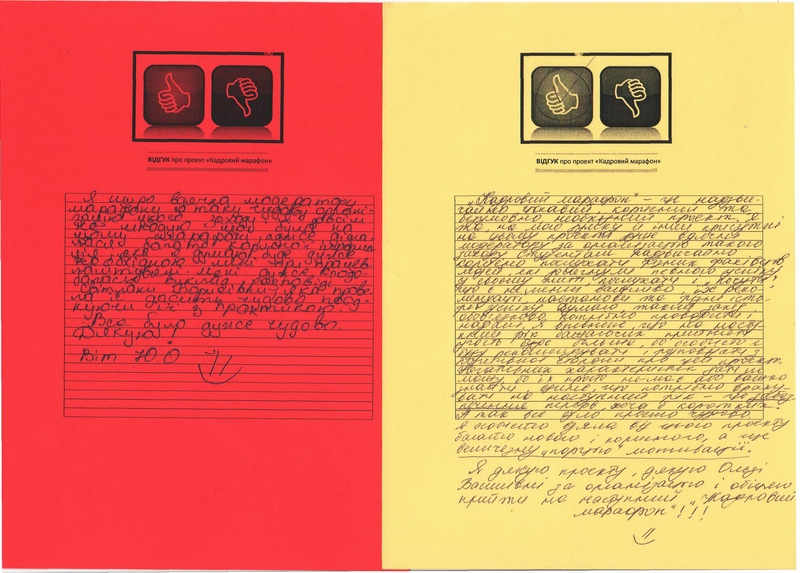 На завершення, хотілось відмітити позитивний настрій усіх учасників та необхідність у подальшому проведенні такого роду практично-пізнавальних заходів, особливо враховуючи відгуки студентів про пілотний проект "Кадровий марафон". Зважаючи на це, з впевненістю можна зробити висновок: захід вдався та обов’язково матиме продовження.