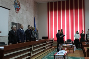 З вітальним словом до усіх присутніх звернувся ректор університету, доктор юридичних наук, доцент Олег Миколайович Омельчук. Теплі привітання випускникам висловив перший заступник голови Хмельницької обласної ради Віктор Романович Адамський.