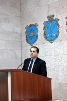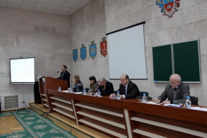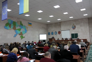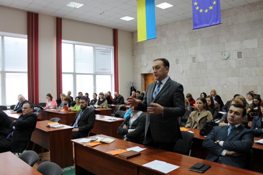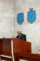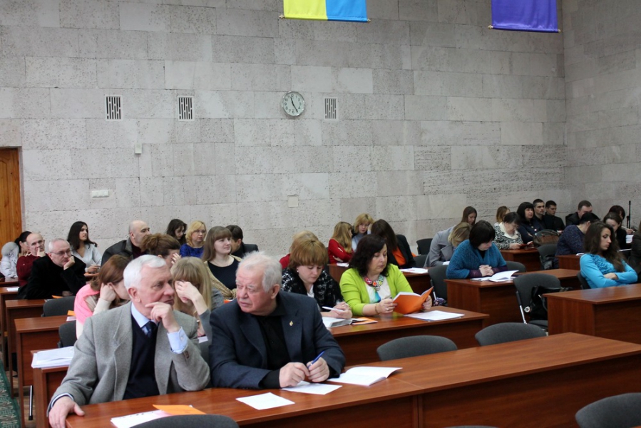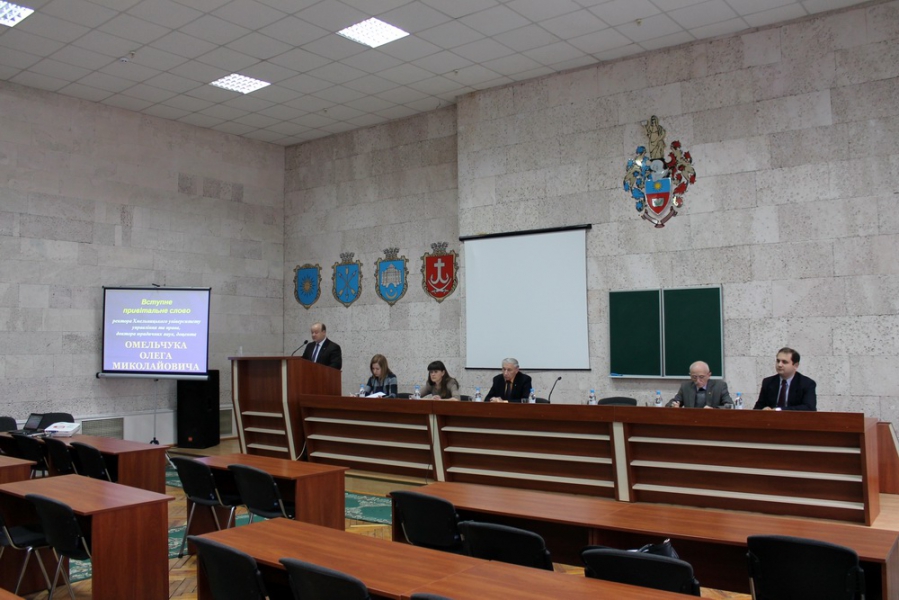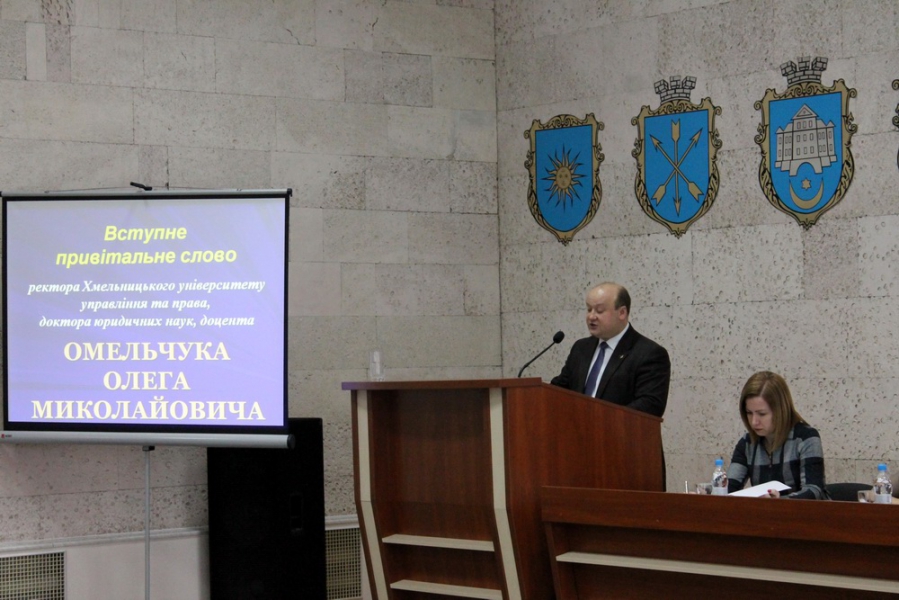 Актовий зал першого корпусу був наповнений викладачами, аспірантами, здобувачами, загалом – науковцями університету. Перед присутніми з вітальним словом виступив ректор університету, доктор юридичних наук Олег Миколайович Омельчук.