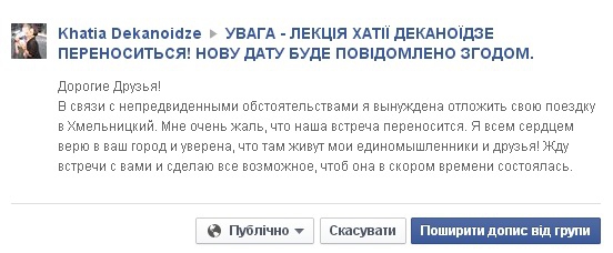 На жаль, попри плани Хатії Деканоїдзе зустрітись із освітянами, студентами і громадським активом Хмельниччини, їй не вдалось перенести дату відрядження, і вона змушена їхати разом із міністерською делегацією.