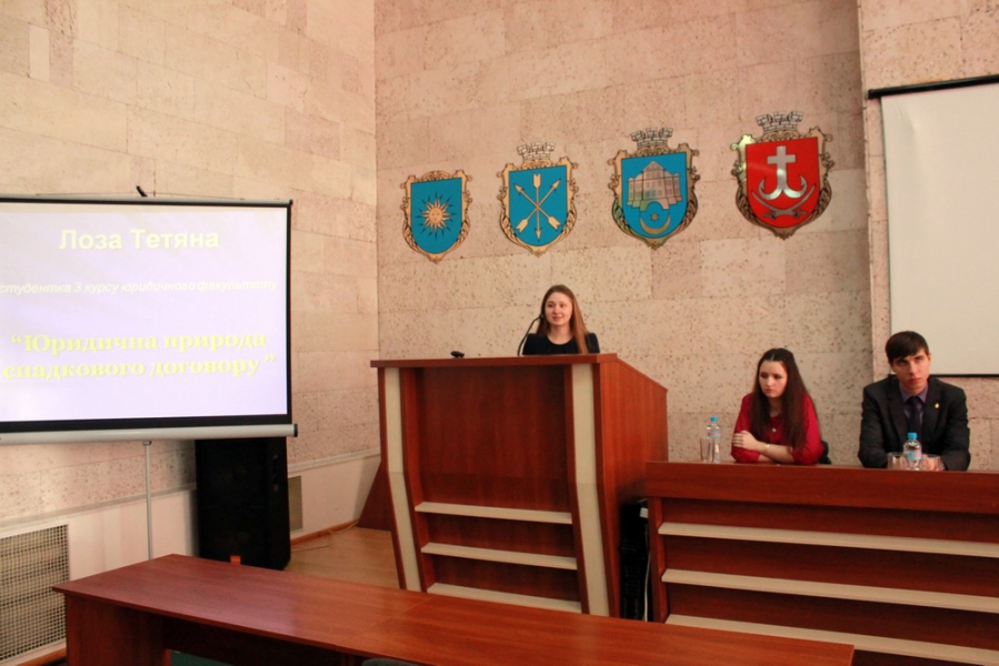 – Лози Тетяни, студентки 3 курсу юридичного факультету – "Юридична природа спадкового договору";