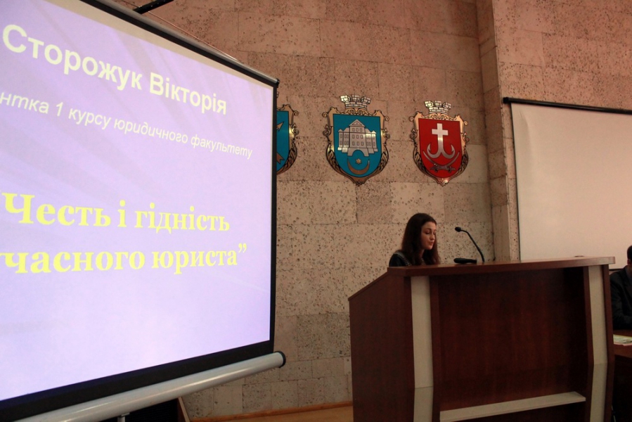 – Сторожук Вікторії, студентки 1 курсу юридичного факультету – "Честь і гідність сучасного юриста".