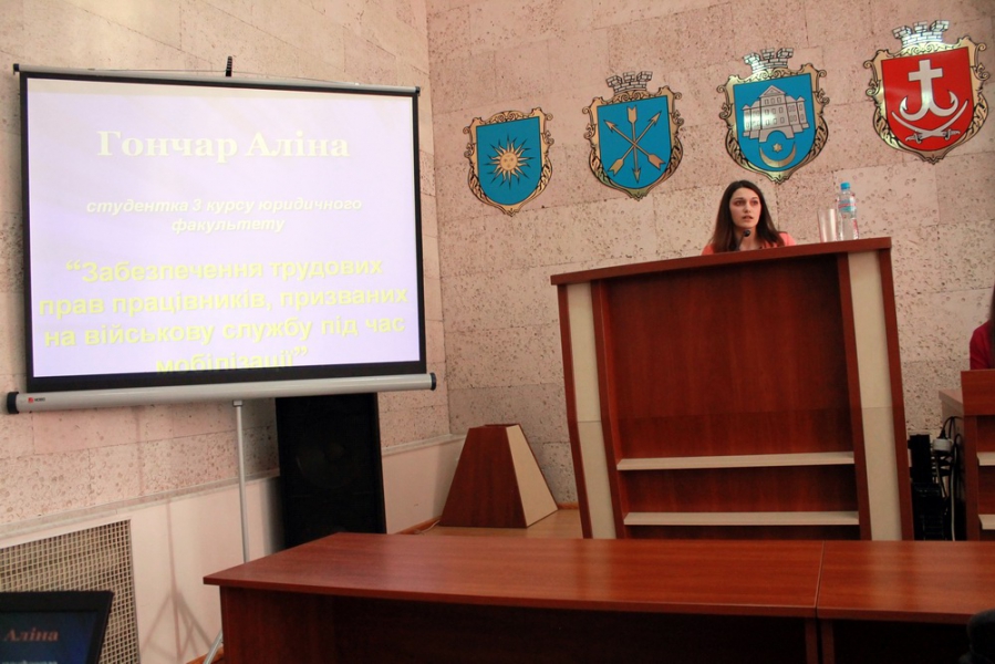 – Гончар Аліни, студентки 3 курсу юридичного факультету – "Забезпечення трудових прав працівників, призваних на військову службу під час мобілізації";