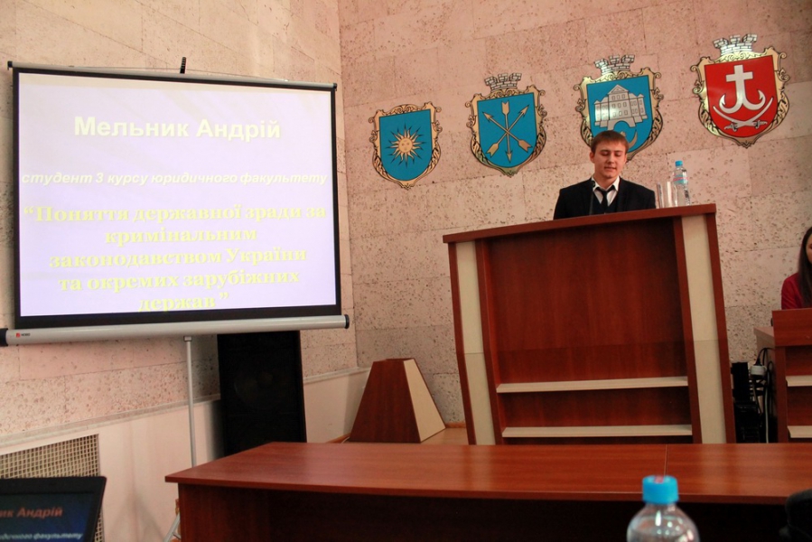 – Мельника Андрія, студента 3 курсу юридичного факультету – "Поняття державної зради за кримінальним законодавством України та окремих зарубіжних держав";