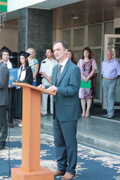 З урочистою промовою до першокурсників, їх батьків, науково-педагогічних працівників, гостей свята звернувся т.в.о. ректора університету Леонід Леонідович Місінкевич. Він підбив підсумки роботи колективу університету, окреслив завдання і висловив готовність і надалі працювати на благо процвітання нашої Держави. Також з теплими та щирими побажаннями до першокурсників звернувся перший заступник голови обласної ради Віктор Романович Адамський, який окреслив освітні пріоритети та відзначив досягнення та здобутки колективу. З материнським благословінням до усіх першокурсників звернулась мама студентки першого курсу факультету управління та економіки Тетяна Миколаївна Грінченко. Із вітальними словами від студентства виступила Голова Студентської ради університету Анастасія Муляр.