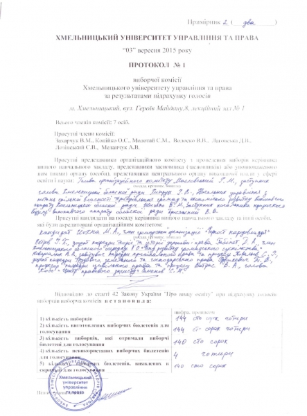 За результатами проведення 03 вересня 2015 року виборів ректором Хмельницького університету управління та права обрано доктора юридичних наук, професора Омельчука Олега Миколайовича