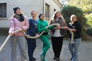 А коли перетягування канату відбувалось між прекрасною та сильною половиною людства ніякого «піддавання» зі сторони меншості «не було»…(зазначимо, що команда жінок у складі 5 учасників; чоловіків – 3).