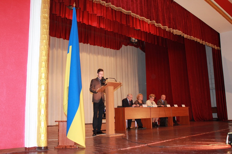 Із вітальними зверненнями до усіх присутніх виступили: Антоніна Михайлівна Харчук (заступник директора Департамену освіти і науки Хмельницької обласної державної адміністрації, начальник управління професійної освіти та ресурсного забезпечення); Інна Михайлівна Шоробура (президент Хмельницького територіального відділення Малої академії наук України, ректор Хмельницької гуманітарно-педагогічної академії, доктор педагогічних наук, професор); Леонід Леонідович Місінкевич (перший проректор Хмельницького університету управління та права, доктор історичних наук, професор); Гончарук Григорій Макарович (Заслужений працівник освіти України, директор Хмельницького обласного центру науково-технічної творчості учнівської молоді); Єгор Новосад (учень 11 класу Хмельницького навчально-виховного комплексу №10, переможець ІІ та фіналіст ІІІ етапів Всеукраїнського конкурсу-захисту науково-дослідницьких робіт 2015 року у секції «Економічна теорія та історія економічної думки» відділення економіки, активний учасник обласних, всеукраїнських та міжнародних заходів з учнівською молоддю науково-дослідницького напряму позашкільної освіти).