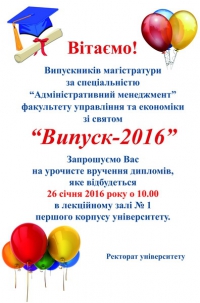 Запрошуємо Вас на урочисте вручення дипломів, яке відбудеться 26 січня 2016 року о 10-00
