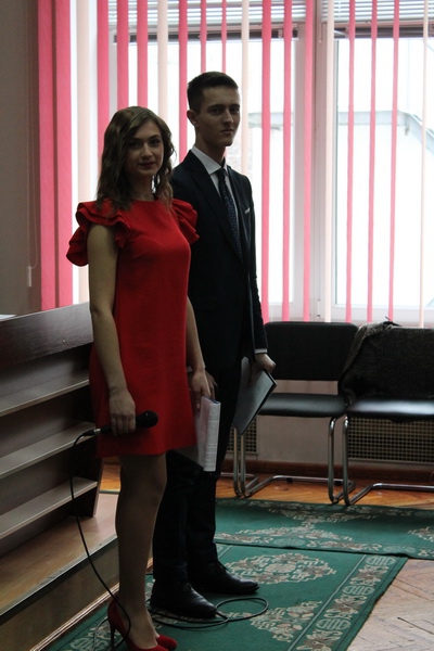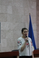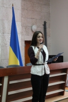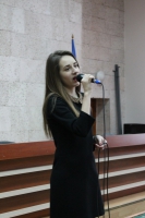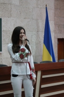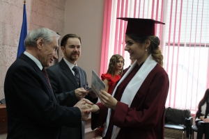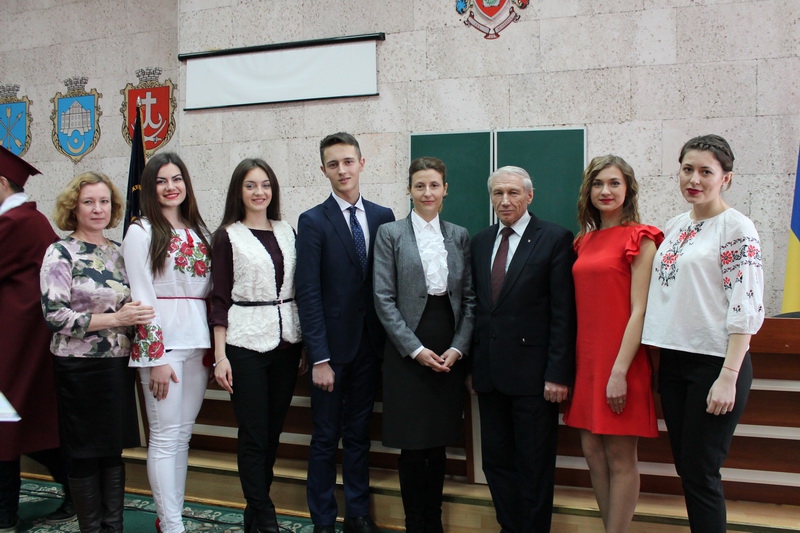А наші студентки Наталія Заремба та Богдана Хмельницька подарували випускникам дві музичні композиції; Катерина Долинна привітала усіх виконанням поетичного твору; від імені студентського активу із вітальним виступом звернулась голова культмасового департаменту Студентської ради університету Юлія Андрушко. Надзвичайно щирою та живою промовою усіх розчулила випускниця магістратури Вероніка Біла: вдячність батькам, науково-педагогічним працівникам, друзям та колегам, теплі спогади та приємні моменти із навчання назавжди залишаться у серцях наших випускників.