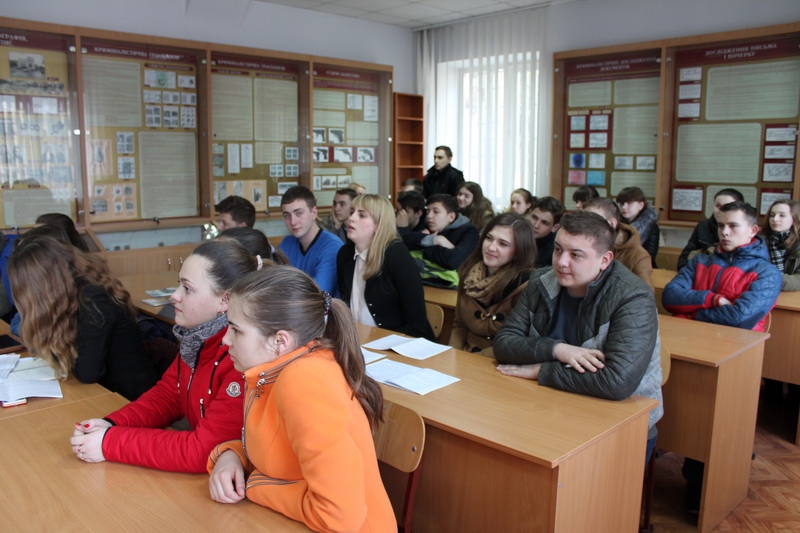 Вступне слово керівника навчального відділу юридичного факультету Лариси Миколаївни Стребкової викликало у слухачів інтерес до професії юриста і вони серйозно замислились над таким вибором. Учням було продемонстровано криміналістичну лабораторію, де викладач кафедри кримінального права та процесу Андрій Петрович Мазур розповів про основні положення криміналістики, її важливість в аспекті діяльності правоохоронних органів та зацікавив учнів основними положеннями дактилоскопії.