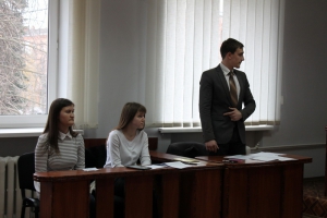 Наступне, чим студенти дивували гостей, – навчально-показове судове засідання про стягнення аліментів на малолітню дитину. Ми висловлюємо слова вдячності студентам 3-ї групи 4 курсу юридичного факультету, які на високому якісному рівні організували судове засідання, із дотриманням усіх процесуальних дій, та продемонстрували свої знання: суддя - Черніюк Олена, секретар судового засідання - Грушко Михайло, судовий розпорядник - Романюк Віктор, позивач - Неборецька Анастасія, представник позивача - Мельник Вікторія, відповідач - Хромий Назар, представник відповідача - Холод Олег, свідок на стороні позивача - Роговська Олеся, свідок на стороні відповідача - Федорук Юлія. Молодці! Бажаємо аби ви завжди удосконалювали набуті навички та ніколи не зупинялись на досягнутому!