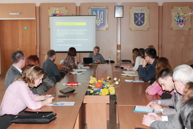 Метою зустрічі було ознайомлення аудиторії з можливостями, що їх надає Програма, та обговорення умов участі у конкурсах на отримання фулбрайтівських стипендій.