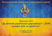 Хмельницький університет управління та права запрошує Вас взяти участь у роботі круглого столу “До витоків української державності - ЗУНР: основні віхи та здобутки”, засідання якого планується 27 травня 2016 року о 10 год. у першому корпусі університету (м. Хмельницький, вул. Героїв Майдану, 8).