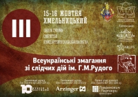 Запрошуємо Вас взяти участь у ІІІ Всеукраїнських змаганнях зі слідчий дій ім. Г. М. Рудого. В межах фабули кожна з команд проводить почергово слідчі дії, кількість яких визначається оргкомітетом. За кожною слідчою дією закріплюються експерти, які слідкують за ходом виконання слідчої дії, оцінюють її на предмет ефективності та відповідності чинному законодавству.