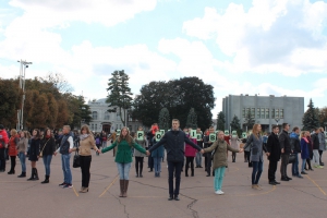 Сьогоднішній день для нас виявився досить насиченим. Адже наші студенти долучились до проведення флешмобу з нагоди 450 річниці надання Магдебурського права м. Хмельницькому, який організовувало Головне територіальне управління юстиції у Хмельницькій області. Студенти юридичних факультетів міста створили серце із написом усередині «Магдебурському праву 450 років». Приємна атмосфера заходу сприяла дружній згуртованості студентів міста, які спільно зробили вагомий внесок у підготовці святкового флешмобу.