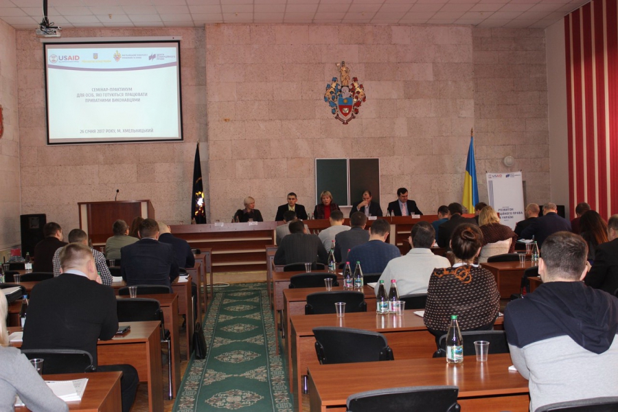 Близько 70 осіб з різних регіонів України зібралися у стінах Хмельницького університету управління та права, щоб ознайомитися з особливостями професії приватного виконавця.