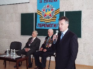 Зі святом Перемоги присутніх привітав голова наглядової ради університету Віталій Олуйко. Він подякував ветеранам за їх безсмертний подвиг, за те, що не жаліючи себе, кров’ю і потом, вони здобули перемогу, звільнили рідну землю від загарбників, зробивши все для розбудови незалежної України. Він, також, відзначив велику роль аматорського мистецтва у вихованні молоді на славних бойових традиціях нашого народу.