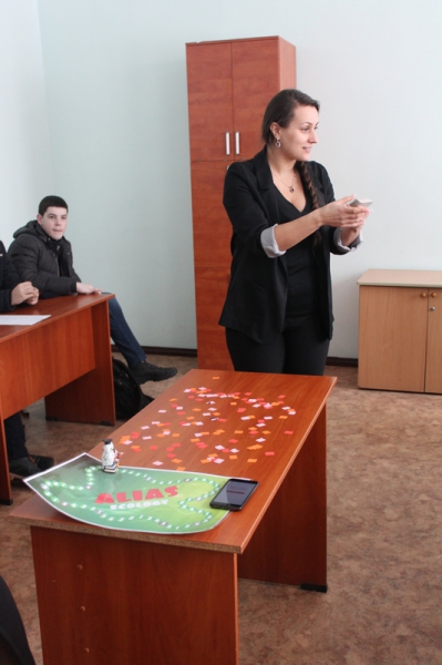 Цікавою та пізнавальною грою вступників зацікавила Алла Вікторівна Крушинська- керівник Студентського Бізнес- центру.