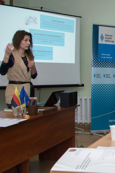 Декан факультету управління та економіки, к.держ.упр, доцент Ковтун І.Б. розповіла присутнім про шляхи активізації участі громадськості у вирішенні проблем місцевого значення.