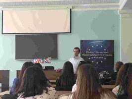 Тимчасово виконуючий обов`язки заступника голови – керівника апарату Хмельницької обласної державної адміністрації) та ректором Університету Олегом Омельчуком, лекцію-дискусію із студентами міжнародно-правової спеціалізації юридичного факультету ХУУП, діалоги із громадськими організаціями та засобами масової інформації щодо подальшої співпраці з Інформаційним центром та Представництвом ЄС в Україні.