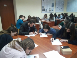 Понад 40 студентів 2 курсу економічного факультету та 3 курсу юридичного факультету разом із викладачами кафедри мовознавства кандидатом педагогічних наук, доцентом І.В. Горячок та старшим викладачем О.В. Подолянчук із хвилюванням та сумлінням писали диктант, який транслювався на Українському радіо. Позитивні емоції та задоволення отримали усі, хто долучився до такої патріотичної акції. По завершенню роботи усіх учасників радіодиктанту надсилаються на перевірку до оргкомітету. Сподіваємося, що гарна традиція участі студентів та викладачів Хмельницького університету управління та права у такому диктанті стане щорічною!