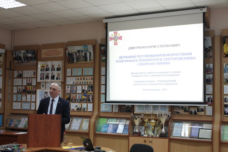 Дмитренка Юрія Степановича. Тема:“ Державне регулювання поліграфних технологій в секторі безпеки і оборони України” за спеціальністю 25.00.05 – державне управління у сфері державної безпеки та охорони громадського порядку