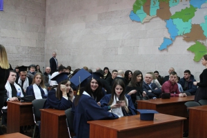 Із вітальним словом до випускників та усіх присутніх звернувся ректор університету, доктор юридичних наук, професор Олег Миколайович Омельчук, голова вченої ради університету, завідувач кафедри конституційного, адміністративного та фінансового права, доктор юридичних наук, доцент Олександр Миколайович Буханевич та голова екзаменаційної комісії з атестації здобувачів ступеня магістра спеціальності «Менеджмент», завідувач кафедри менеджменту, фінансів, банківської справи та страхування, доктор економічних наук, професор Віктор Петрович Синчак.