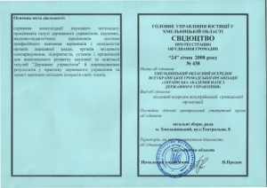 24 січня 2008 року зареєстровано Хмельницький обласний осередок Всеукраїнської громадської організації "Українська академія наук з державного управління", що діятиме на території Хмельницької області. Дана організація об’єднала науковців в сфері державного управління, управлінців-практиків, студентів магістратури Хмельницького університету управління та права, які навчаються за спеціальністю "Державна служба".