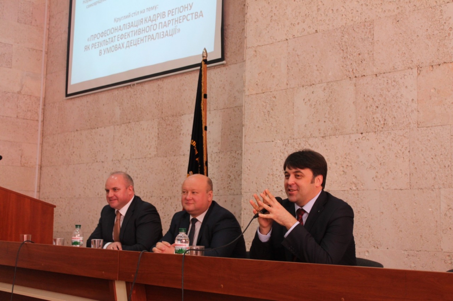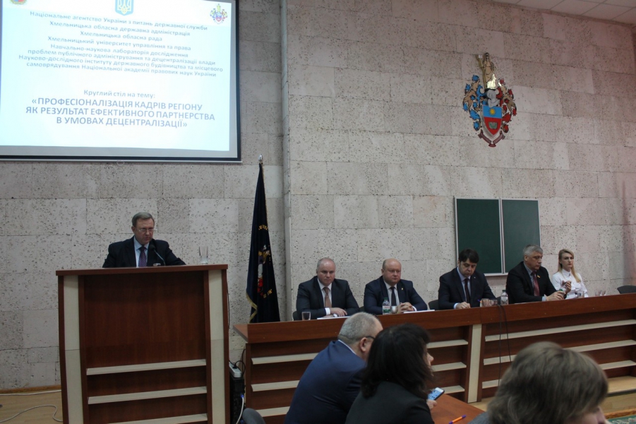 У ході обговорення учасники круглого столу одностайно підкреслювали, що стабілізація ситуації в Україні неможлива без реалізації ефективної кадрової політики, посилення уваги до розвитку людського потенціалу, який формується передусім у системі освіти. У таких умовах Хмельницький університет управління та права може стати єдиним муніципальним осередком із розробленою гнучкою, неперервною системою підготовки, перепідготовки та підвищення кваліфікації фахівців для актуалізованих потреб регіону, в якому реалізується концепція навчання впродовж життя.