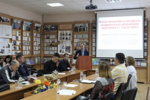 Учасники круглого столу проаналізували філософсько-правові та історико-правові підходи до становлення форм держави в 20-ті роки ХХ століття, виходячи із доктрини та практики державного будівництва в УСРР, розкрили модель радянської держави та історико-правову оцінку першої Конституції УСРР.