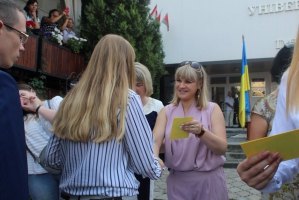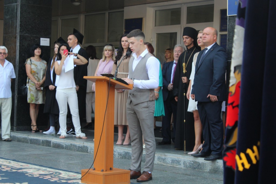 Любов, повага і довіра до нашого університету передається з покоління в покоління. Тому з вітальним словом до першокурсників звернулась бабуся студента першого курсу юридичного факультету Мельничук Ірина Володимирівна, яка довірила нашому навчальному закладу не тільки своїх дітей, а й онука. А клятву першокурсників цьогоріч проголошував студент факультету управління та економіки Поліщук Даніїл.